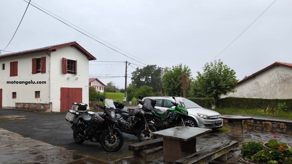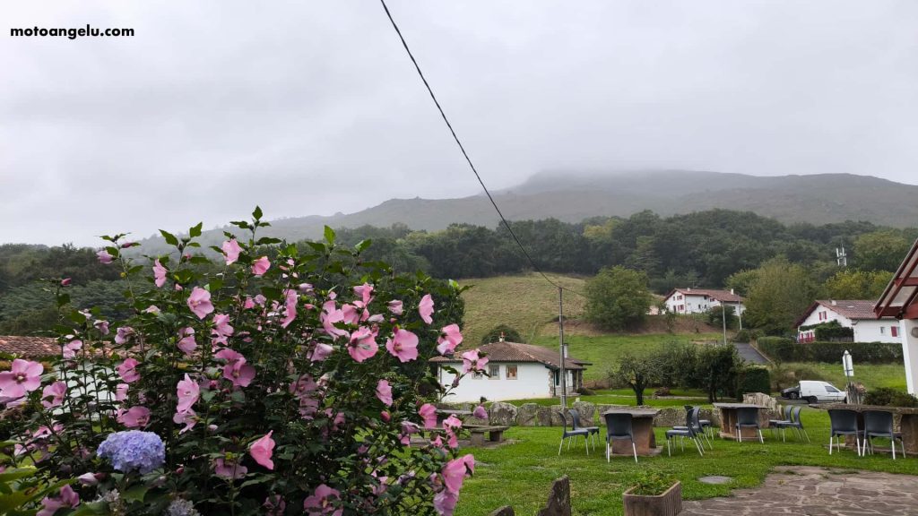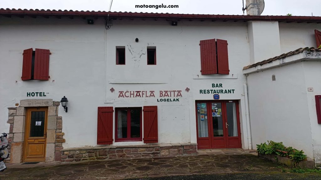 De hecho, aunque habíamos acordado con el hotel llegar sobre las 18:00, continuamos directamente hasta Ascain, donde llegamos a las 14:00. El pequeño hotel rural nos recibió con las llaves listas, aunque sin restaurante abierto. Siguiendo la recomendación de los dueños, nos acercamos a un supermercado y compramos provisiones para comer y cenar tranquilos. La idea era clara: un día de calma tras tantas curvas.