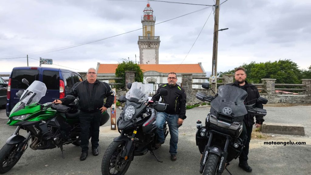 En el camino, la lluvia apareció de nuevo, ligera pero constante. Al entrar en Hondarribia nos encontramos con un tráfico infernal: retenciones interminables y controles policiales intentando organizar el caos. Nos costó mantenernos juntos, pero lo logramos. Y, al fin, tras casi una hora, estábamos en nuestro destino: el Faro de Higuer, vigilando el Cantábrico, el punto más occidental de los Pirineos.