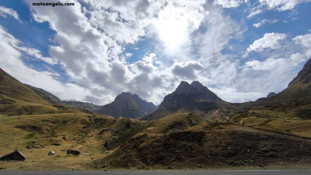 El descenso nos ofreció todavía alguna parada breve para inmortalizar las cumbres dejadas atrás, pero el camino hacia el Portalet (1 794 m) fue más discreto. El paisaje seguía siendo bonito, aunque tras Peyresourde, Aspin, Tourmalet y Aubisque, el listón estaba muy alto y este tramo se sintió más como un enlace hacia nuestro destino final.